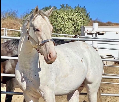 Machiavelli d’Oro (Machi) is a rare dominant white stallion, standing his first season at ATO Horses Farm in Temecula, CA. He was born in 2016. Still growing, he stands almost 16 hands tall.
