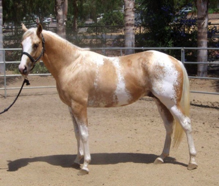 PALOMINO AND WHITE (DOMINANT WHITE SABINO) JC THOROUGHBRED AND APHA STALLION; DUAL REGISTERED (TRIPLE PENDING). HALF BROTHER TO SATO. FOAL DATE: 5/15/2005.